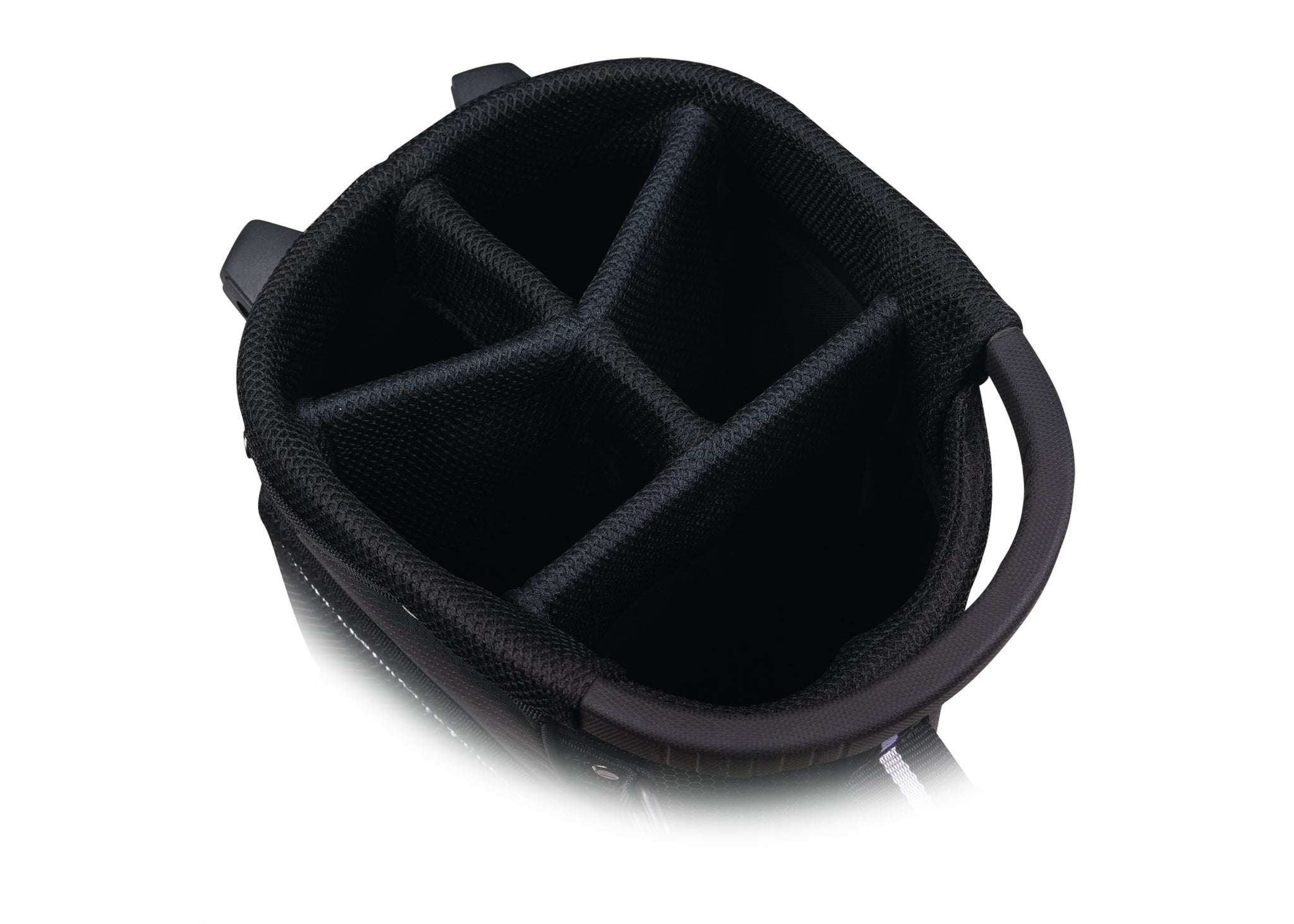 Bold colors, stylish graphics and all the organization you need make up the Chev Stand bag. Each pocket was designed to filet open to allow for maximum storage with the ease of opening and closing. The bag features 6 pockets including a velour line valUAbles pocket. Topping off the bag is a 5-way top with grab handle and full length dividers, keeping your clubs organized.