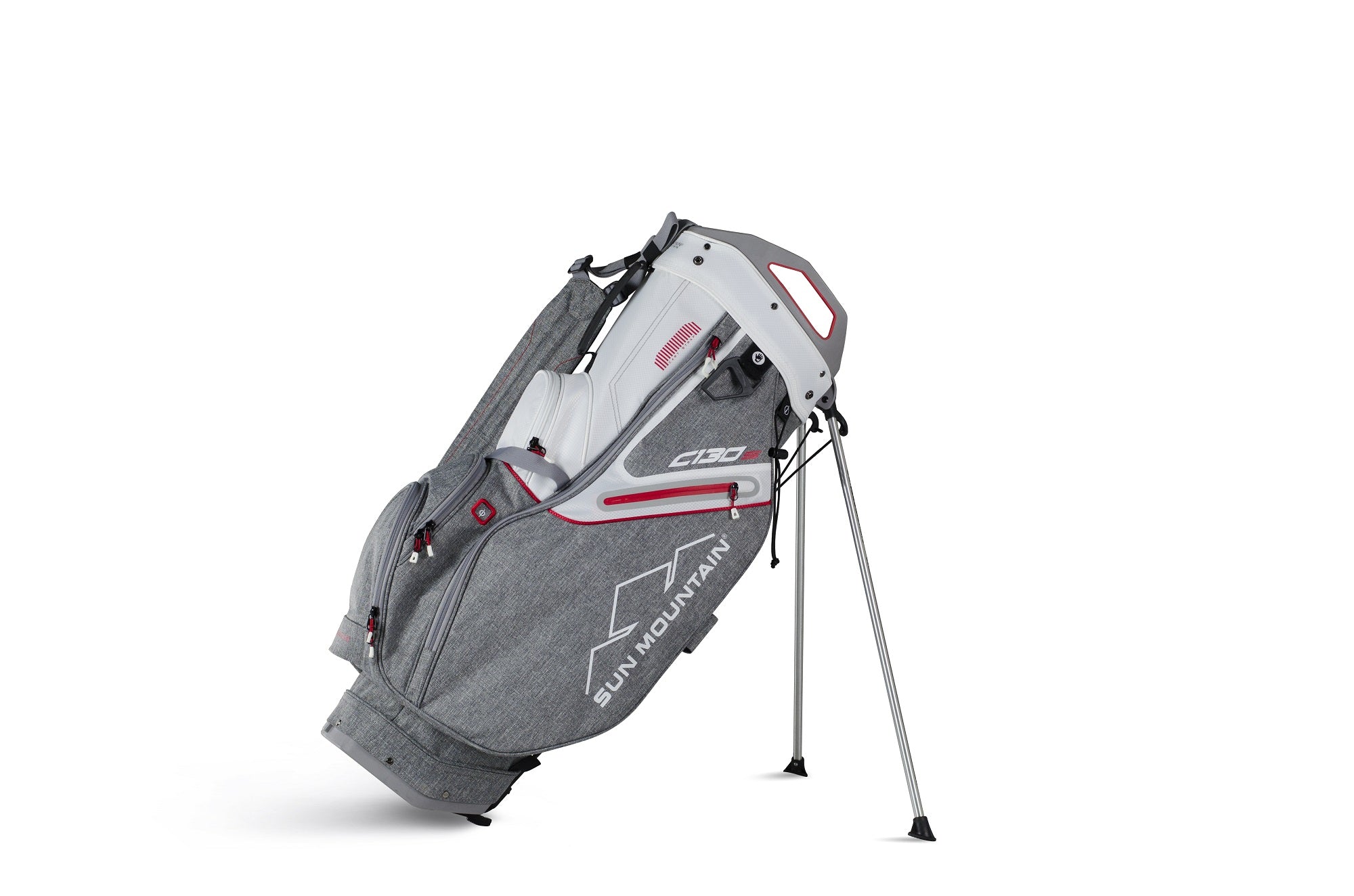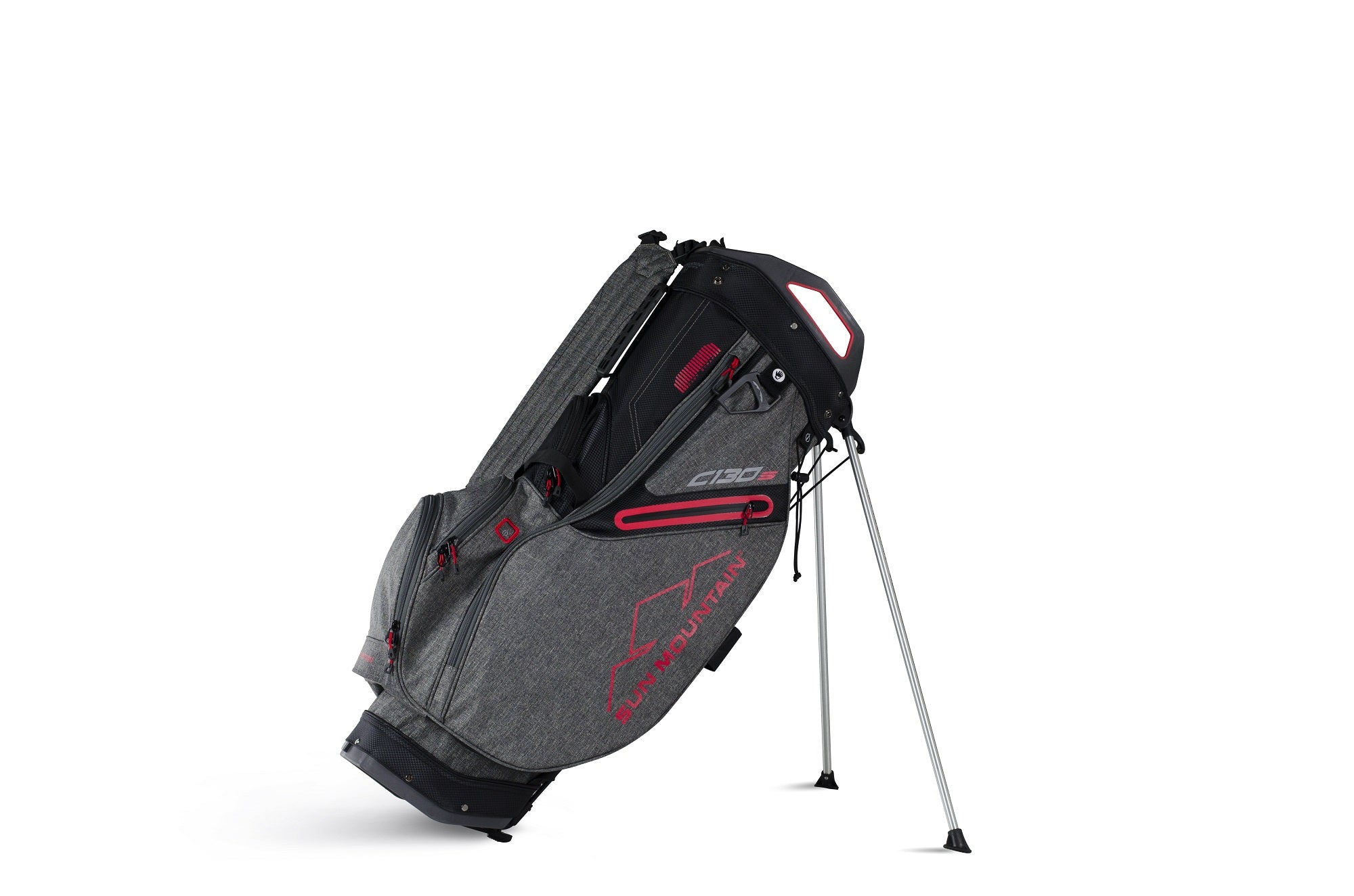 Adapted from Sun Mountains best-selling C-130 cart bag, the C-130S is designed primarily for cart use, with a stand system added for the range. Cart-friendly features include a leg-lock system, a cart strap tunnel which allows full pocket access when the bag is on a cart and a cart-friendly bottom that fits nicely in riding cart bag wells.