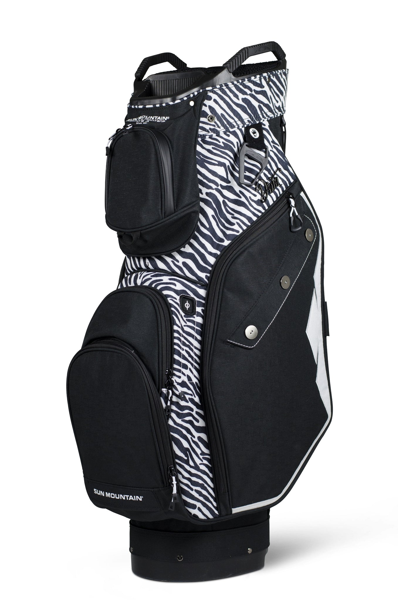 The Diva, a riding cart bag with a stylish edge, comes complete with all of the features that make Sun Mountain cart bags so functional. It has a reverse-orientation, 15-way top, integrated handles to assist in loading the bag on a cart, a dedicated putter compartment and pockets that are all accessible when the bag is on a cart. For 2018, Sun Mountain added a water-resistant, velour-lined rangefinder pocket.
